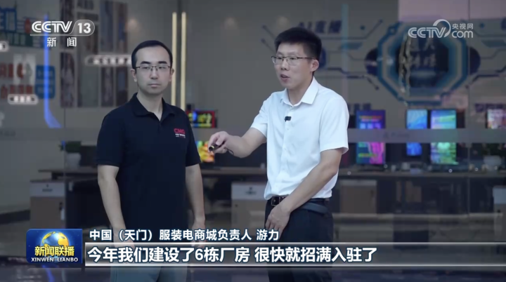 中國(guó)(天門)服裝電商城負(fù)責(zé)人 游力:今年我們建設(shè)了6棟廠房,很快就招滿入駐了,還有20多家企業(yè)沒(méi)搶到。