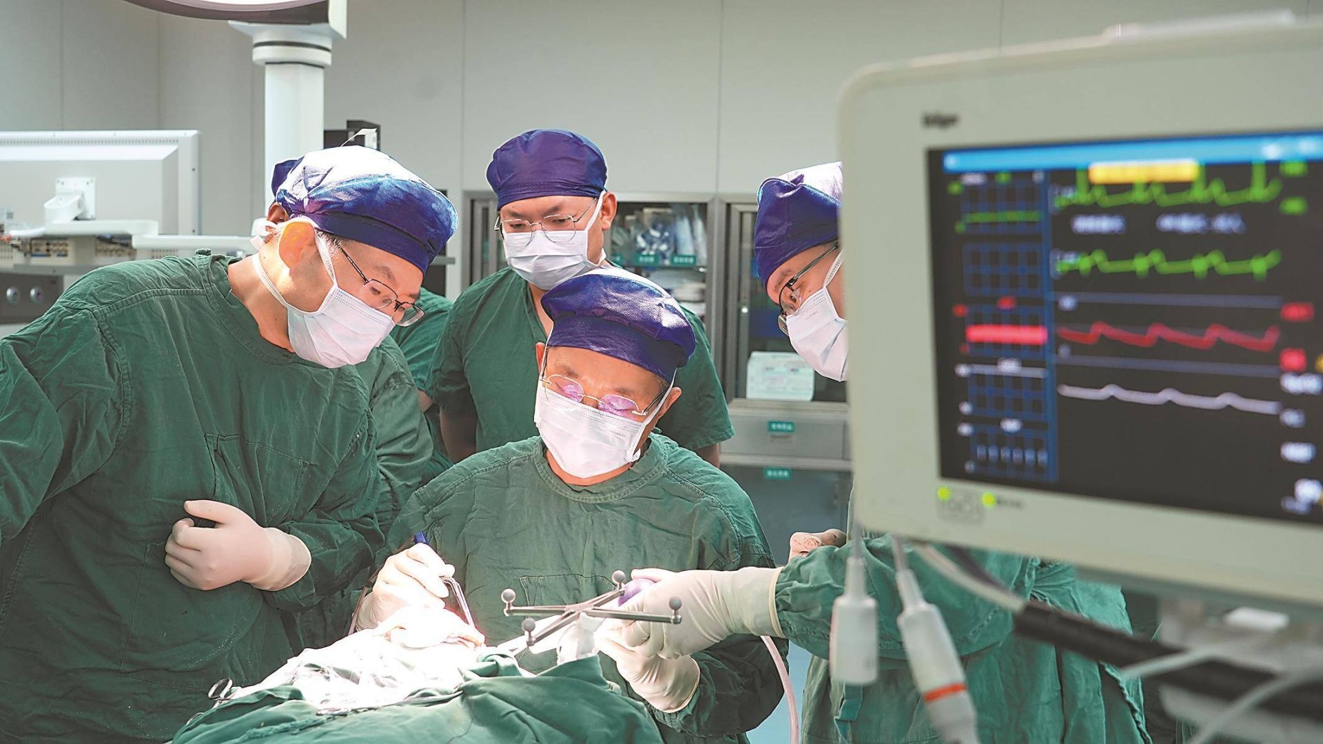 武漢協(xié)和醫(yī)院神經(jīng)外科姜曉兵教授團(tuán)隊(duì)實(shí)施腦機(jī)接口芯片植入手術(shù)。(受訪單位供圖)