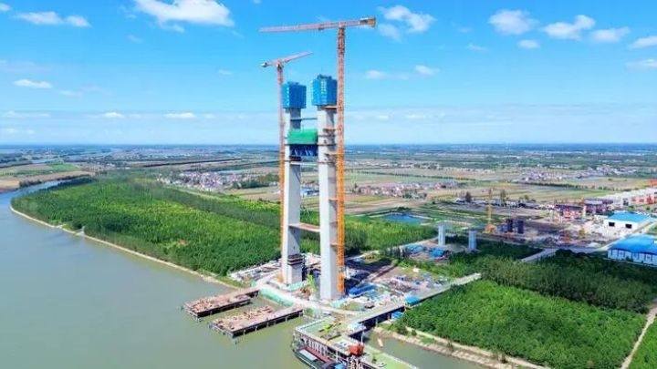 李埠長江公鐵大橋主塔拔節(jié)升高