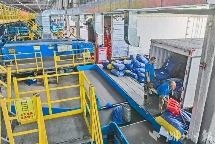 在荊州中通吉物流有限公司的自動化分揀車間,包裹在履帶上傳送,精準(zhǔn)分流向各地,高效運(yùn)轉(zhuǎn)的現(xiàn)場僅需少量人員維護(hù)。