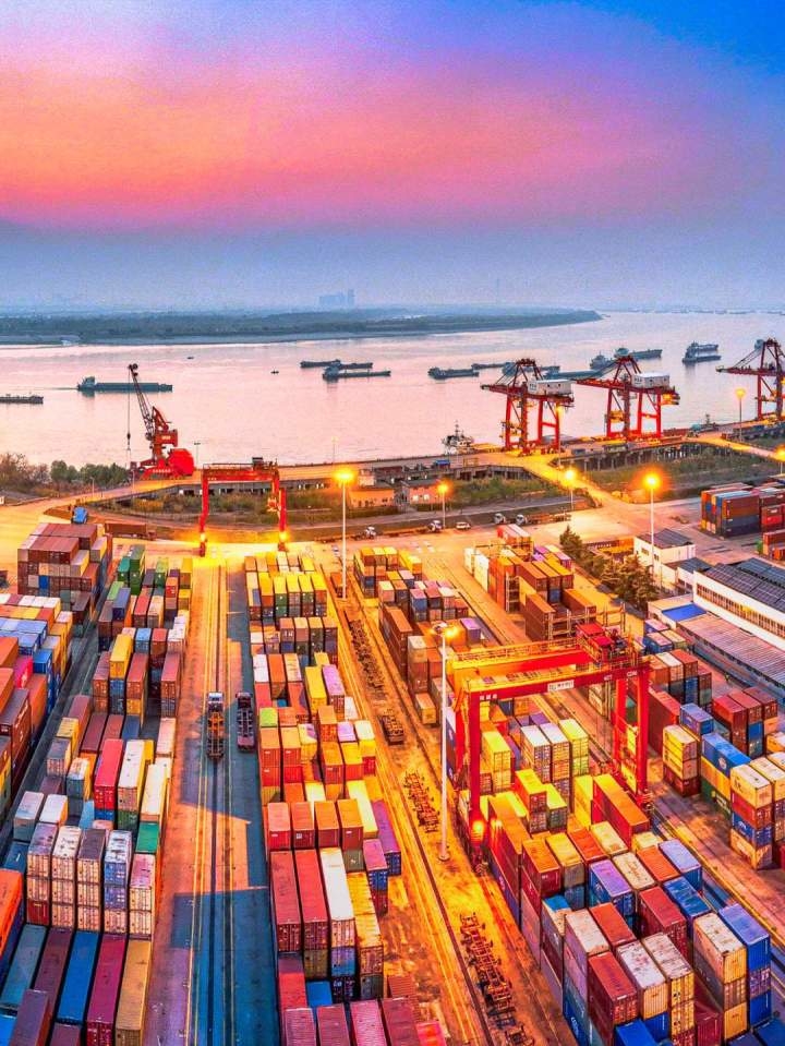 燈火通明的武漢陽邏港(無人機(jī)照片)。新華社記者肖藝九 攝