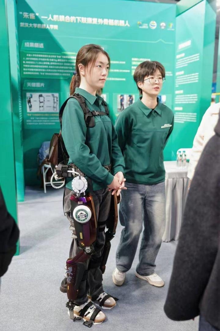 武漢大學機器人學院團隊帶來“朱雀”下肢康復外骨骼機器人(湖北日報全媒記者 嚴芳婷 攝)