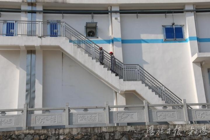 公司員工爬上糧倉(cāng)階梯。(全媒體記者曾維明攝)