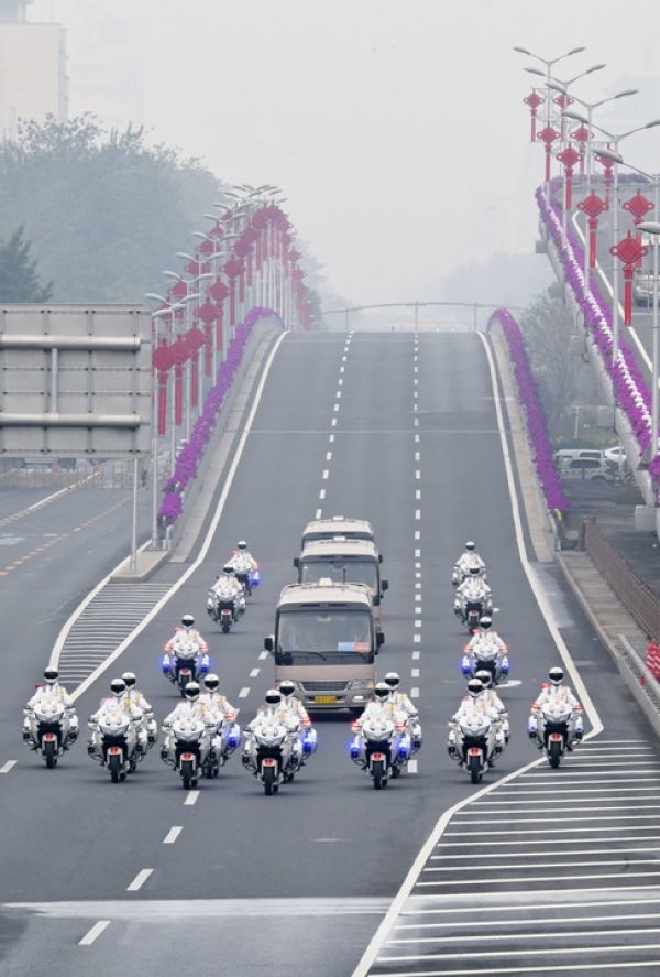 2020年9月8日上午,全國抗擊新冠肺炎疫情表彰大會在北京人民大會堂隆重舉行。這是國家勛章和國家榮譽稱號獲得者集體乘坐禮賓車從住地出發(fā),由國賓護(hù)衛(wèi)隊護(hù)衛(wèi)前往人民大會堂。新華社記者 劉彬 攝